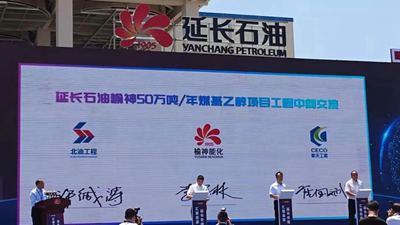 6月30日,北京石油化工工程有限公司(簡稱:北油工程)工程總承包的陜西延長石油榆神能化50萬噸/年煤基乙醇項目舉行了隆重的中交儀式,標(biāo)志著全球首套合成氣制乙醇工業(yè)化裝置由建設(shè)階段全面轉(zhuǎn)入試車準(zhǔn)備階段。陜西省國資委副主任李凱,副主任汪亮;榆林市委常委、副市長楊向喜;榆神工業(yè)區(qū)管委會主任孫守洋;延長石油集團黨委書記、董事長蘭建文;總經(jīng)理張愷颙;陜西省、榆林市、榆神工業(yè)區(qū)有關(guān)部門領(lǐng)導(dǎo)及項目參建單位負責(zé)人等共同出席了儀式。
