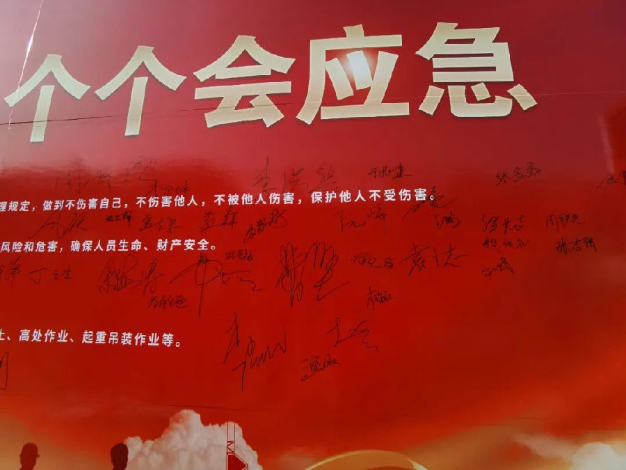 隨后,與會人員依次在“安全生產(chǎn)月”簽字墻上簽下自己的名字。通過“安全生產(chǎn)月”活動的開展,警醒員工對安全的感知,增強安全生產(chǎn)的責任感,時刻繃緊安全弦,堅守安全紅線,自覺規(guī)范操作,真正做到學安全、懂安全、能安全。