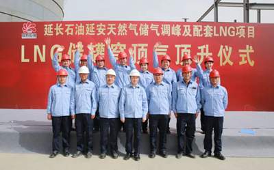 5月7日,由北京石油化工工程有限公司(簡稱“北油工程”)總承包的延長石油延安天然氣儲氣調峰及配套LNG項目取得重大進展——兩座5萬立方米液化天然氣(LNG)儲罐順利完成“雙罐同步穹頂氣頂升”關鍵工序。標志著項目主體結構建設全面完成,正式轉入內罐安裝階段,為項目后續投產運營奠定了堅實基礎。