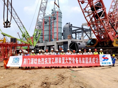 5月28日上午,北京石油化工工程有限公司總承包的荊門源晗電池材料有限公司20萬噸/年乙醇裝置(含電子級乙醇)項目取得重要進展,羰基化加氫單元3臺反應器全部吊裝就位,標志著項目大件設備吊裝工作進入全面收尾階段。
